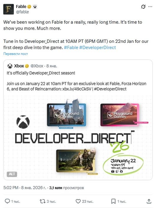 Трансляция Xbox Developer_Direct, запланированная на 22 января 2026 года, обещает стать знаковым событием для всех ценителей культовой франшизы Fable.