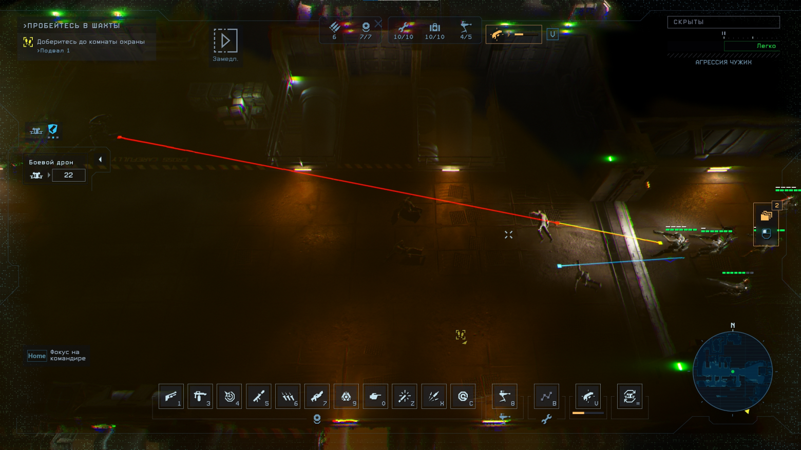 Фактически, как только вы открываете огонь, игра запускает два невидимых таймера. Стресс накапливается стремительно, но его можно купировать, в то время как агрессия растет медленнее, но она необратима. Открытый бой здесь — это крайняя мера, свидетельствующая о провале скрытного маневра.