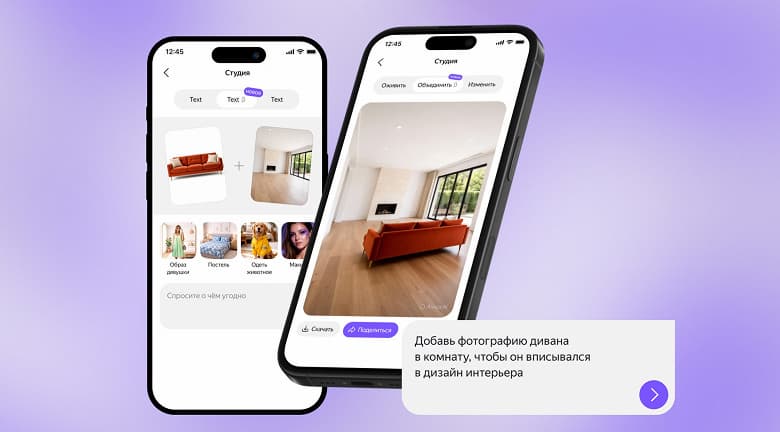 Разработчики Яндекса расширили возможности нейросети «Алиса AI», представив инструмент для синтеза уникальных изображений путем совмещения двух исходных снимков. Новая функция открывает широкие перспективы как для творчества, так и для коммерческих задач: от создания виртуальных селфи со знаменитостями и цифровой примерки одежды до генерации эксклюзивных аватаров и рекламного контента. Технология позволяет брендам наглядно демонстрировать товары, например, интегрируя мебель в различные интерьерные решения или показывая посадку вещей на реальных людях.