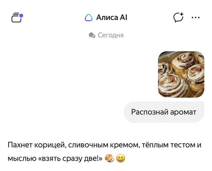 Разработчики из Яндекса анонсировали инновационную опцию в рамках нейросети «Алиса AI», позволяющую идентифицировать ароматы на основе визуального контента. Теперь пользователям достаточно отправить снимок в чат, чтобы получить детальный ольфакторный анализ. По заявлению представителей компании, «Алиса AI» стала первым в мире искусственным интеллектом, обладающим подобным функционалом.