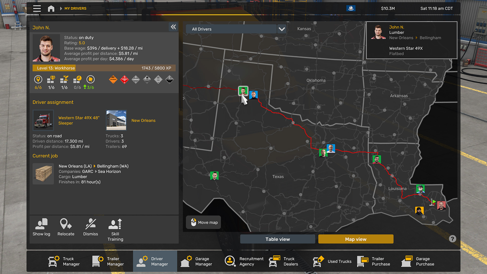 Одно из практических улучшений — лучшая видимость прогресса наемных водителей. Теперь легче отслеживать развитие их навыков. Кроме того, выбранный тип обучения для каждого водителя теперь подсвечивается прямо в общем списке.