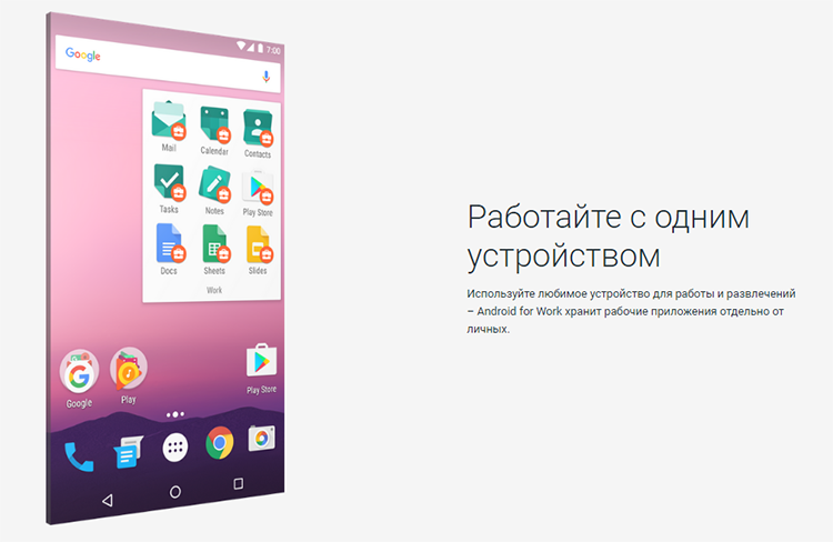 «Поддержка на уровне платформы теперь присутствует на каждом устройстве, совместимом с GMS (Google Mobile Services), поэтому Android for Work и Play for Work стали основными элементами Android и Google Play, — написали инженер-программист Google Адам Коннорс (Adam Connors) и менеджер по продукту Тревис Маккой (Travis McCoy). — Мы думаем, это изменение лучше отражает интегрированную природу корпоративных функций Android и нашу приверженность корпоративной мобильности».