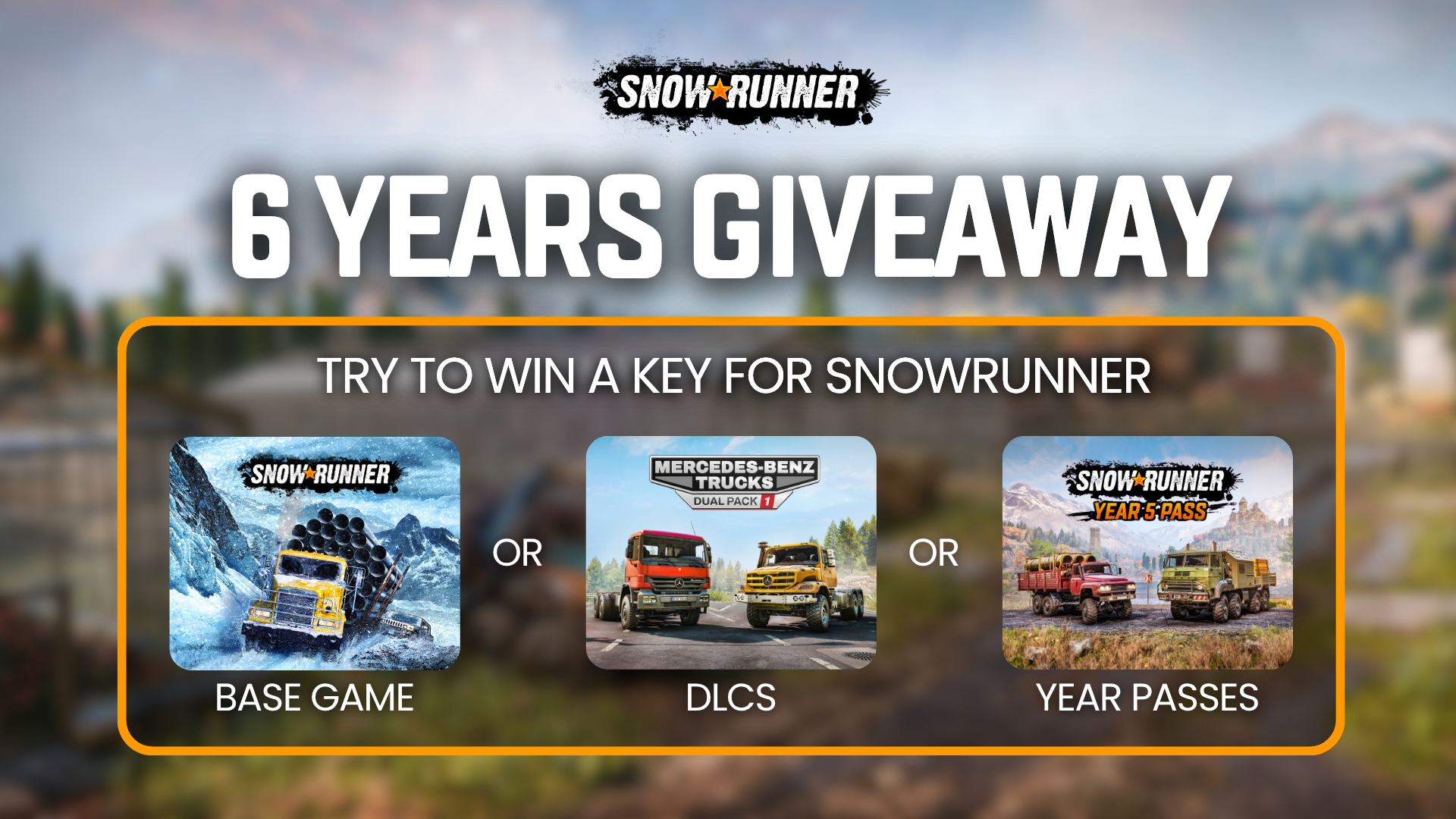 У вас есть шанс выиграть ключ к SnowRunner на выбор: базовая игра, дополнение или Year Pass на любой платформе (за исключением Switch)!