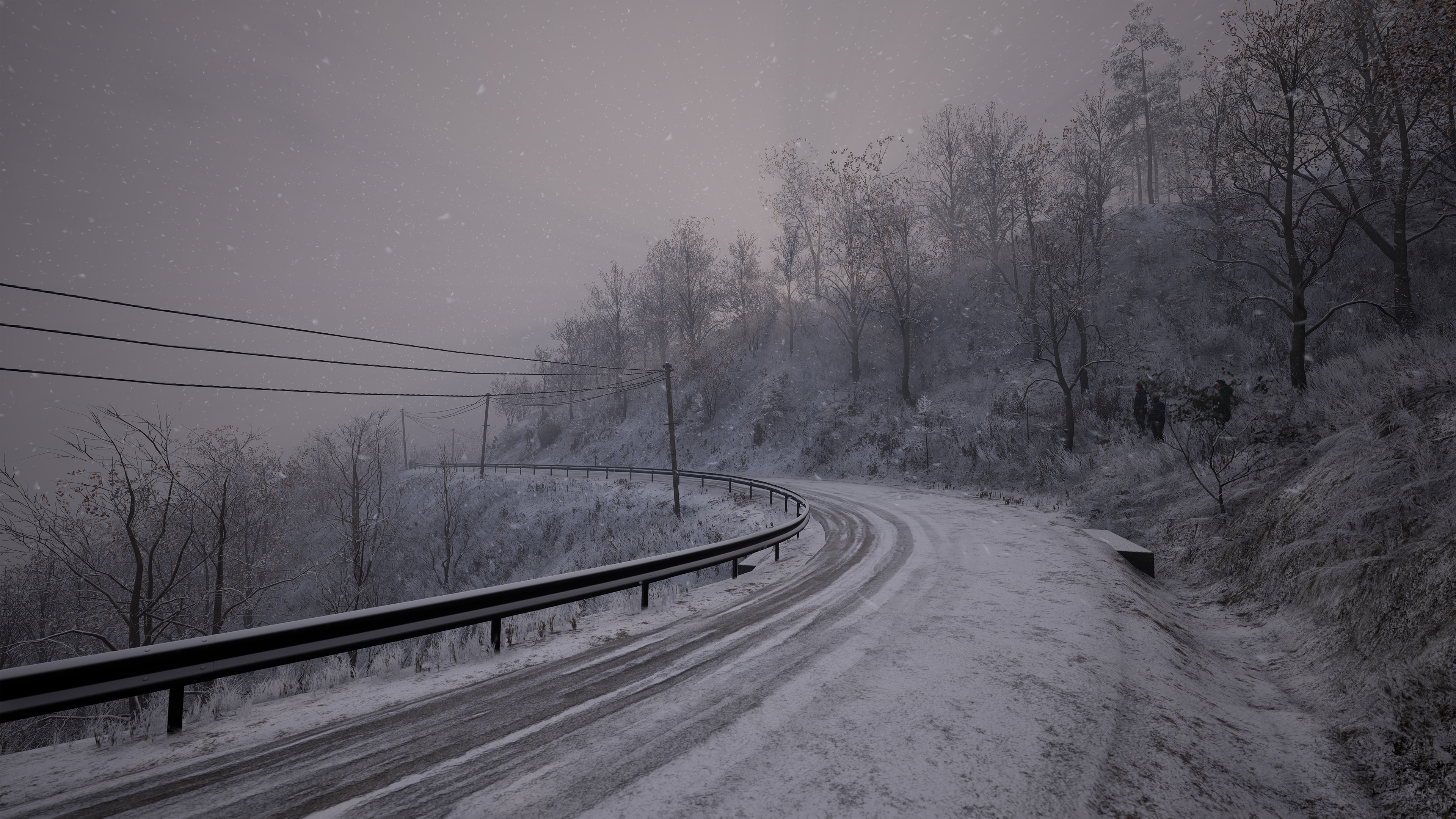 Mirroring the unpredictable nature of the real-world Monte-Carlo event, our stages now feature volatile weather patterns where snow can transition to tarmac and back again in a single run. We have integrated this into our dynamic weather engine, which we believe is a genre-first for representing real-time snowy accumulations and transitions.