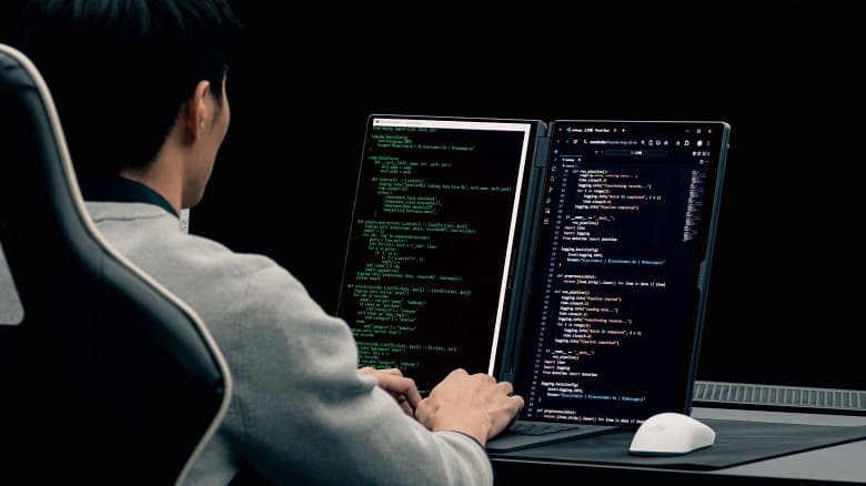 В промо-материалах производитель демонстрирует разнообразные сценарии использования новинки. Любопытно, что зачастую акцент делается на эксплуатации устройства с внешней клавиатурой, а не на режиме, где второй экран заменяет сенсорную панель ввода.