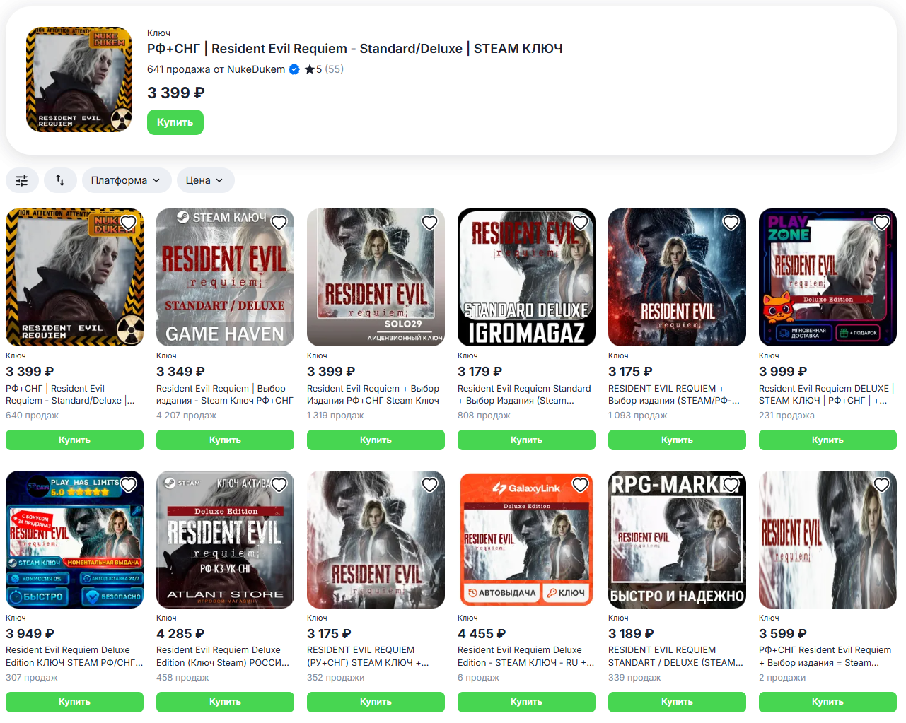 Зайдите на ggsel и введите в поиск «resident evil requiem».