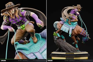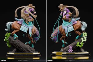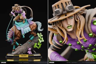 Поклонникам культовой франшизы JoJo’s Bizarre Adventure представили возможность пополнить свои коллекции: студия CHIKARA открыла предзаказ на неофициальную статуэтку по мотивам седьмой арки — Steel Ball Run. В центре композиции — харизматичный Джайро Цеппели, запечатленный во время верховой езды на своей лошади Валькирии.