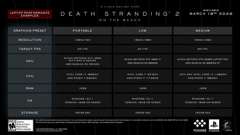 Команда Kojima Productions представила спецификации ПК-версии Death Stranding 2: On the Beach, адаптированные специально для игровых ноутбуков. Подобный жест со стороны разработчиков можно назвать уникальным прецедентом для игровой индустрии.