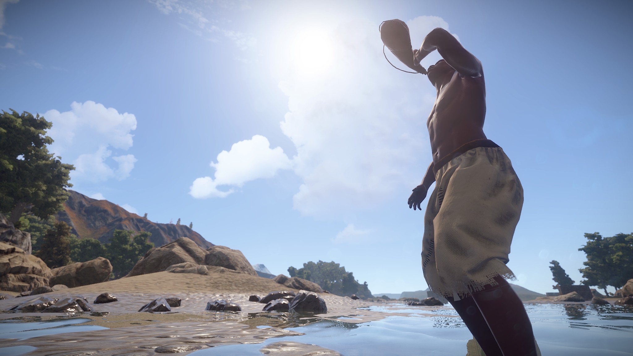 Пресную воду можно найти в озёрах, ручьях… в общем, в любом месте выше уровня моря. Работает она так же, как старая вода — утоляет жажду, даёт немного прибавки к здоровью, но теперь поменьше, чтобы не восполнять до 40 единиц здоровья. Мы также добавили новый предмет, фляжку для воды, которая вмещает в себя больше жидкости, чем бутылка.