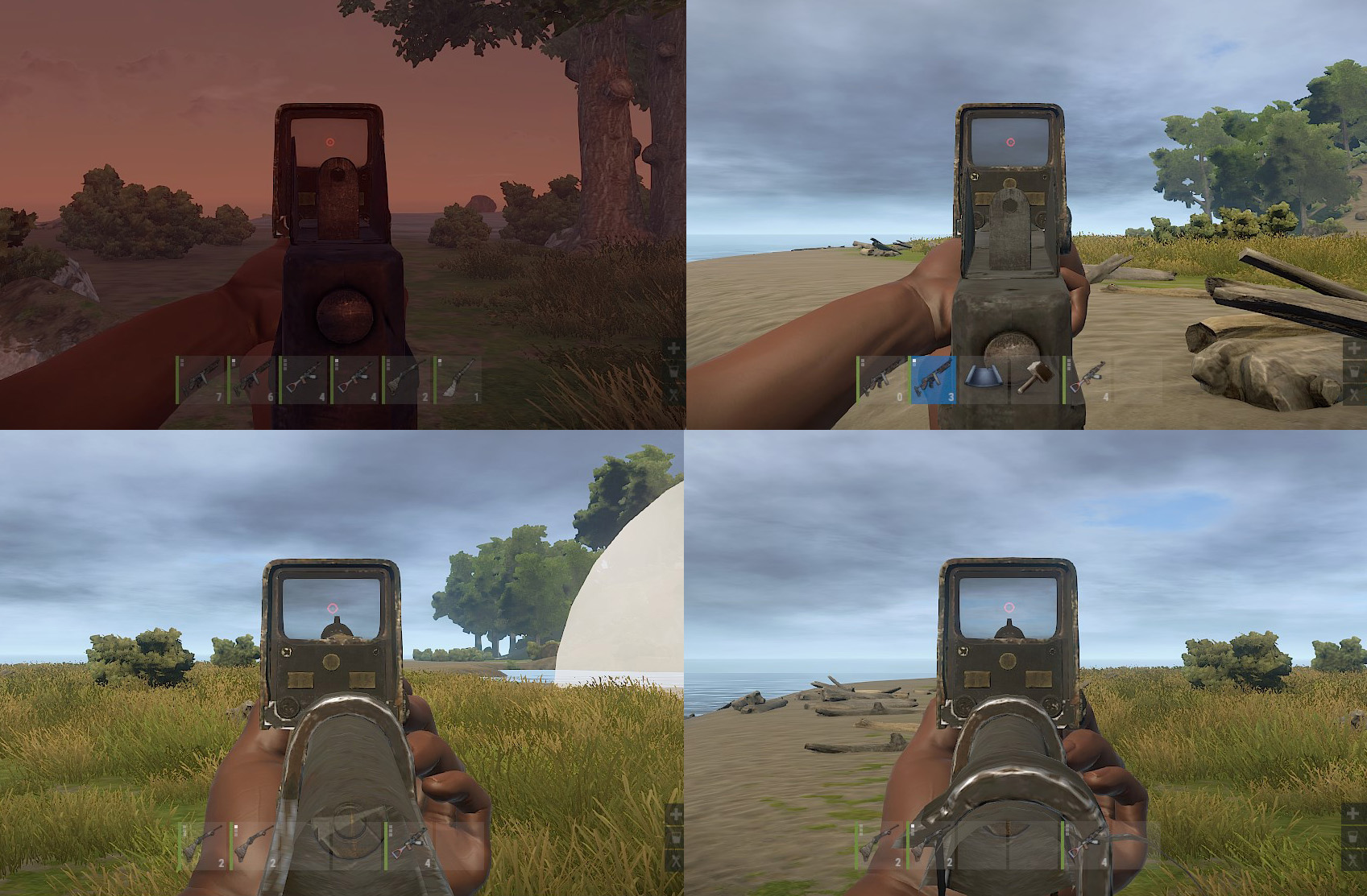 Добавлен распад для спальников, шкафов, баррикад и ловушек Шкафы можно чинить Добавлено отслеживание статистики на серверной стороне (отдельное для каждого сервера) Добавлено отслеживание траектории снарядов (не принудительное) Добавлена серверная консольная переменная lineofsight_protection (на данный момент только включает отслеживание) Увеличено время на сбор растений перед их смертью Коноплю можно собирать не дожидаясь созревания (с уменьшенным количеством ткани на выходе) Игнорируются пули и снаряды от зависших игроков Сервер учитывает лаги игроков при проверки траектории снарядов и пуль В логи снарядов на сервере вносятся вносятся имена игроков и целей Игроки, застрявшие в дверях, больше не получают срабатывания антихака Улучшена детекция флайхака (меньше потенциальных ложных срабатываний) Исправлено: слишком яркие облака ночью Исправлено: невидимый опреснитель Исправлено: размытое лого разработчиков при низких настройках графики Исправлено: отсутствие взаимодействия опреснителя с ведром с водой Исправлено: потенциальное падение сервера из-за ведра с водой Исправлено: эксплоит лутинга на расстоянии Исправлено: ротация эффекта частиц при сборе Добавлен стартовый параметр сервера decay.tick (устанавливает интервал цикла распада) Исправлено: остаточная скорость игрока была неправильной во время серверных лагов Твики анимации игрока Исправлено: позиция голоприцела на оружии Исправлено: graphics.revz 1 не выполняла своих функций, вызывая глюки Исправлено: revz затемняла окружение Исправлено: revz отключала превью игрока в инвентаре Исправлено: revz искажала освещение и отражения Исправлено: revz скрывала декали, имена игроков, точку голоприцела, стекло фонаря Исправлено: revz скрывала корпус и внутренности вертолёта Исправлено: revz искажала размещение табличек Исправлено: revz делала бестекстурные модели невидимыми Исправлено: revz делала объекты на фоне гривы лошади, стекла вертолёта прозрачными Исправлено: с revz меню затеняло воду Исправлено: потеря окраски гривы лошади Исправлено: симуляция воды имела видимые швы Исправлено: биллборды деревьев под d3d9 Исправлено: чёрные тени под травой при уровне шейдеров ниже 300 Исправлено: чёрный цвет самого низкого LOD`а лошади Исправлено: океаны и реки не показывали бликов от вторичных источников света Исправлено: шейдер стекла исследовательского стола