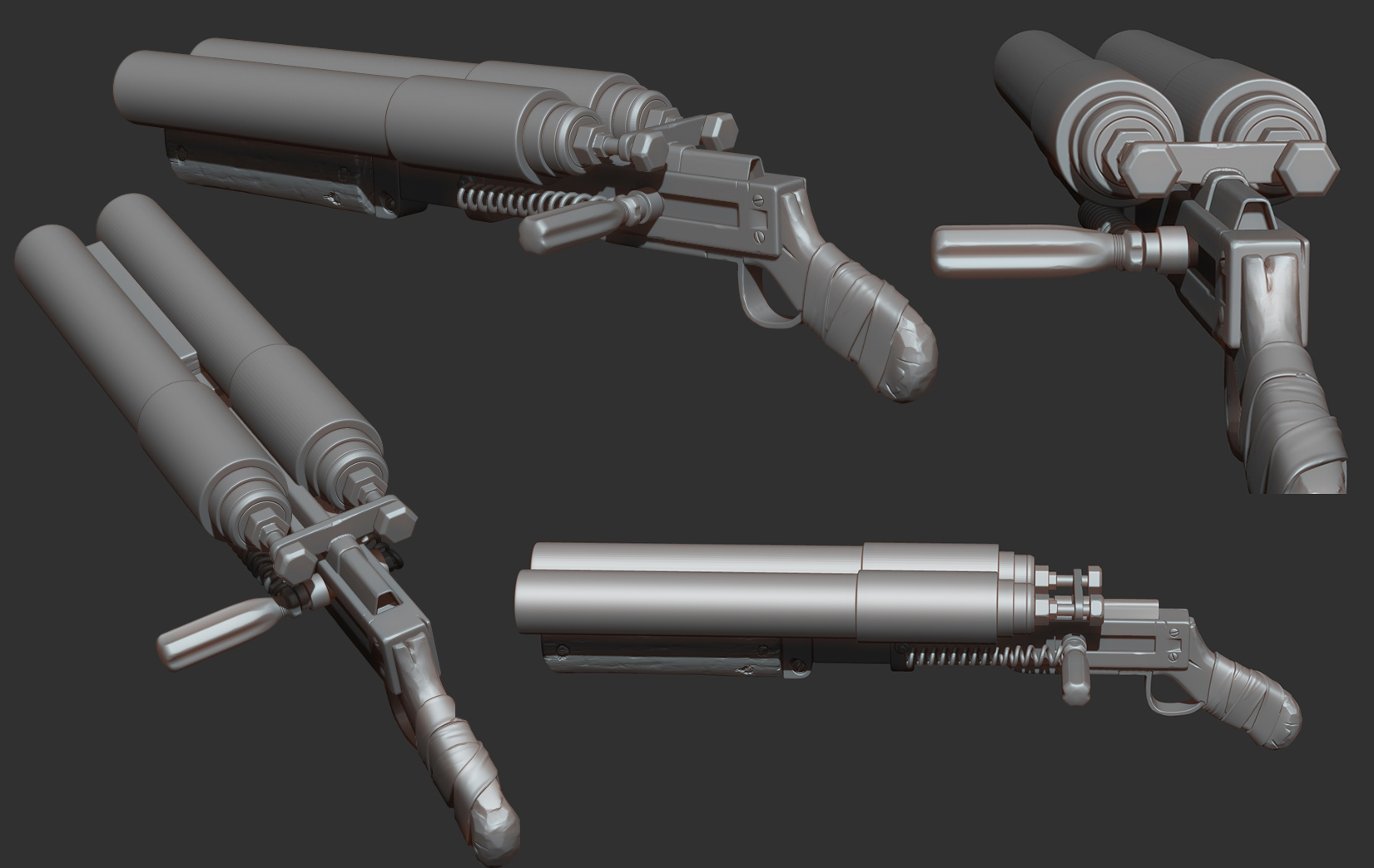After finishing up on the mortar concept, I started to make some good progress on Paul awesome double-barreled shotgun concept. This is the progress so far.