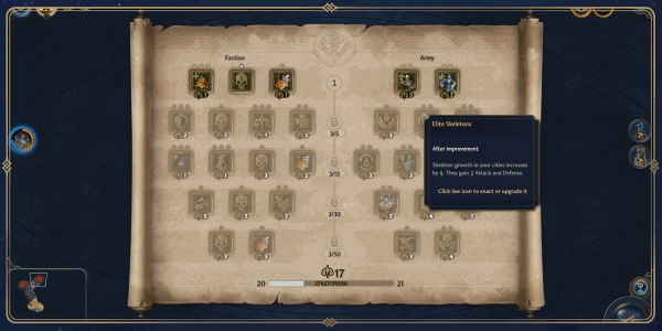 To enact laws, players must actively explore the map and take part in numerous battles. Players will be able to accept or skip any of several laws in each tier, selecting those that fit their particular playstyle.