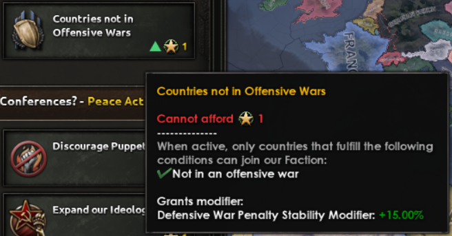Пока фракция не выполнит эту цель и не завершит подготовительные работы, вкладка останется заблокированной.
