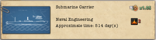 Для исследования Submarine Carriers нужны Basic Carriers и Improved Submarines (раньше обозначавшиеся как 1936 Carrier и 1940 Submarine, теперь — 1939 технология).