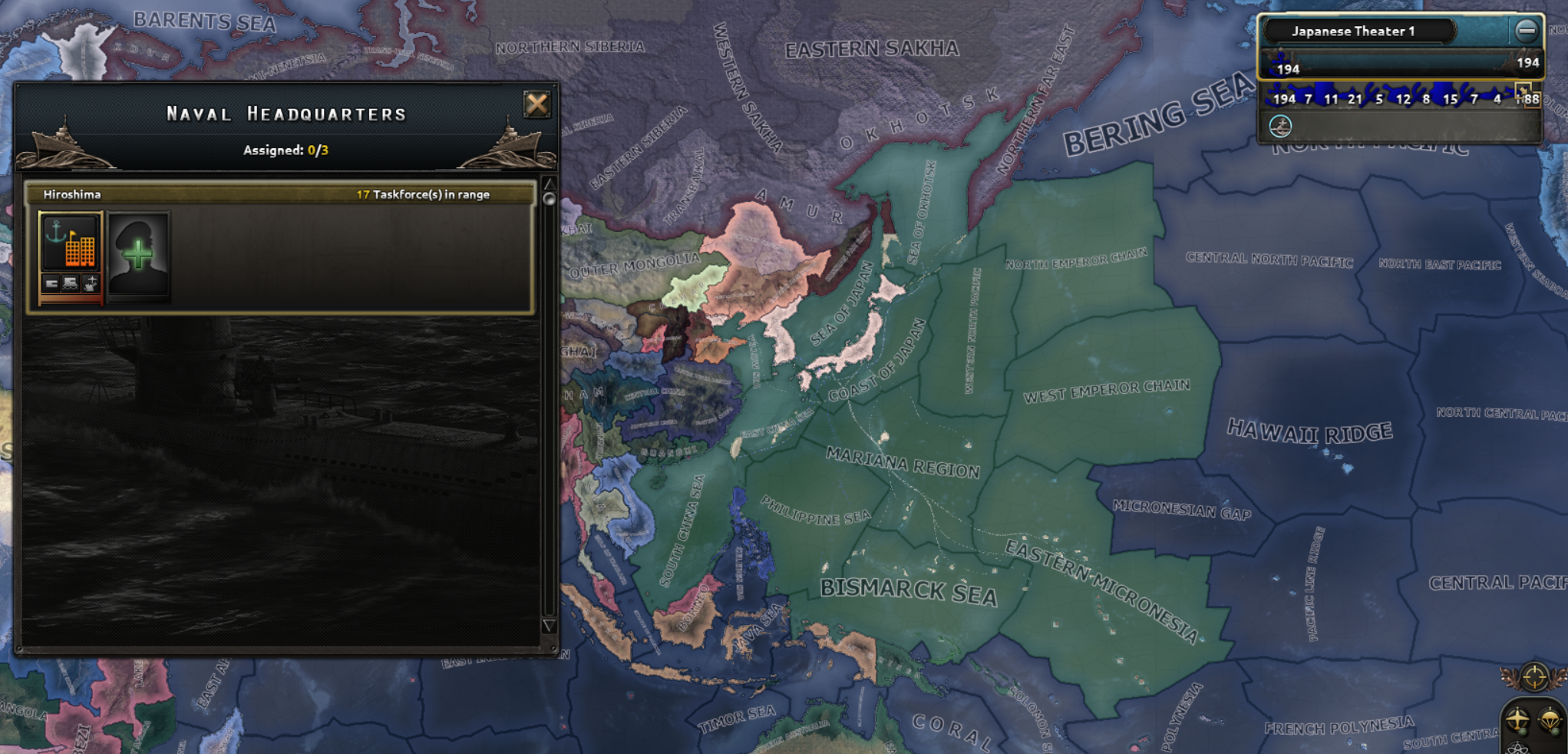 Naval Headquarters позволяют назначить адмирала: все task force в радиусе штаб‑квартиры получают бонусы, зависящие от навыков адмирала. В свою очередь, успешные операции в этом радиусе приносят опыт командующему. Как и Supply Hubs, некоторые штабы уже присутствуют на старте игры — например, Норфолк или Перл‑Харбор.