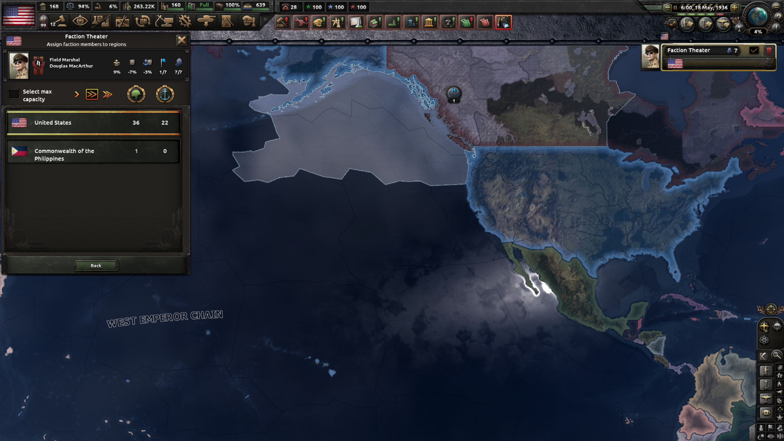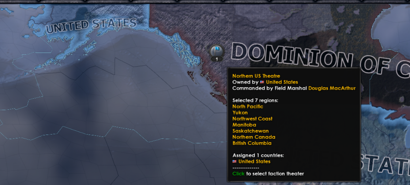 Пример театра, созданного США. В этой конфигурации им поручили Дугласа Макартура и назначили только США как участника.