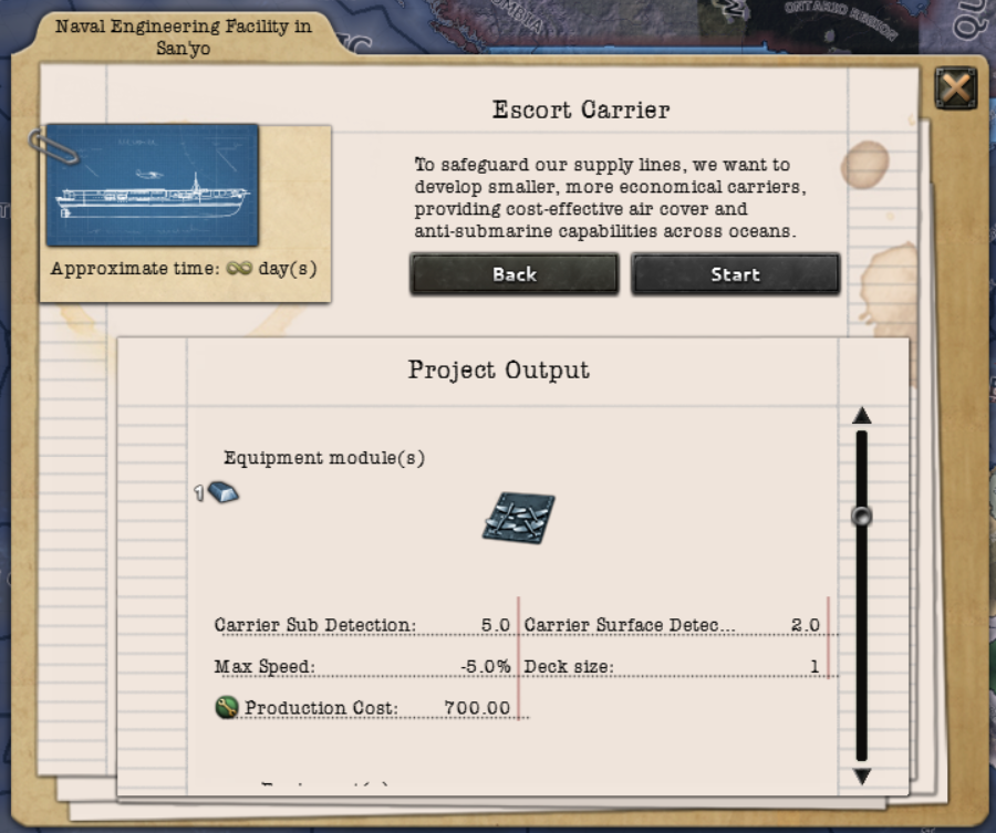 Для проекта Escort Carriers требуется исследование Basic Carriers (ранее — 1936 Carrier).