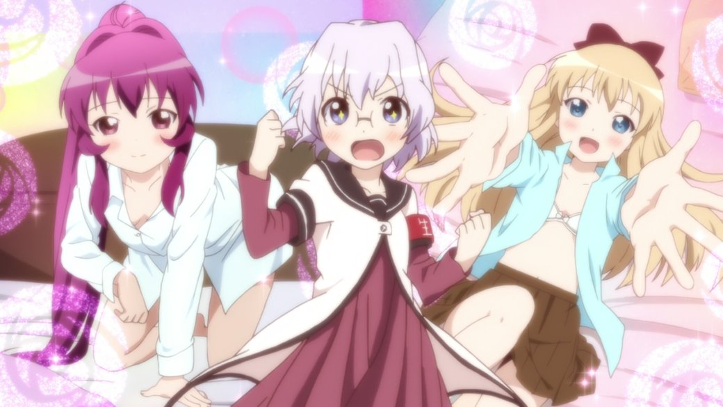 Да, это аниме про остров лесбиянок, причем у всех грудь обязательно неприлично огромных размеров. И они постоянно «сексуально возбуждают» друг друга всеми доступными методами. Пожалуй, самая близкая к хентаю работа в этой подборке. Смотрите на свой страх и риск (или наоборот, кто знает).