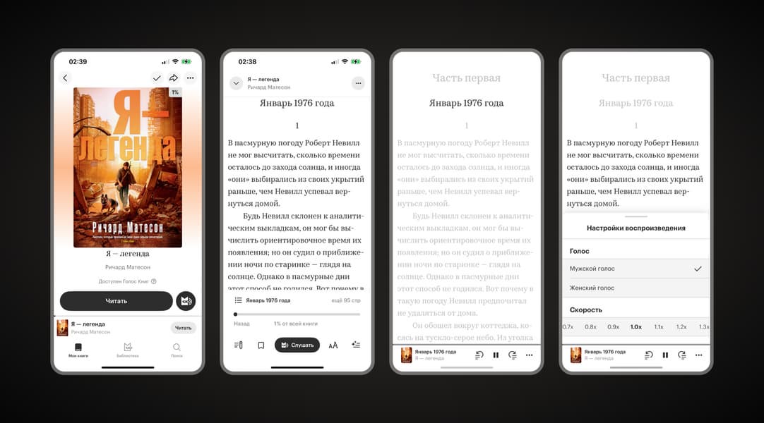 На текущий момент нейроозвучка охватывает свыше 150 000 наименований, что составляет 75% всей библиотеки сервиса. В первом квартале текущего года пользователи активировали данную функцию для каждой третьей книги, не имеющей студийной озвучки.