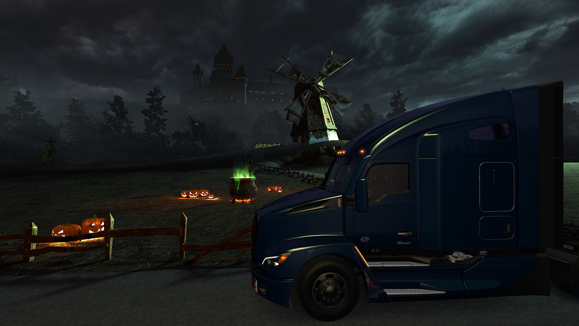 Ваша личная цель — выполнить 15 хэллоуинских доставок по любой трассе, включая 3 в и 3 из Castle Brackenhelm, используя Euro Truck Simulator 2, American Truck Simulator или обе игры вместе.