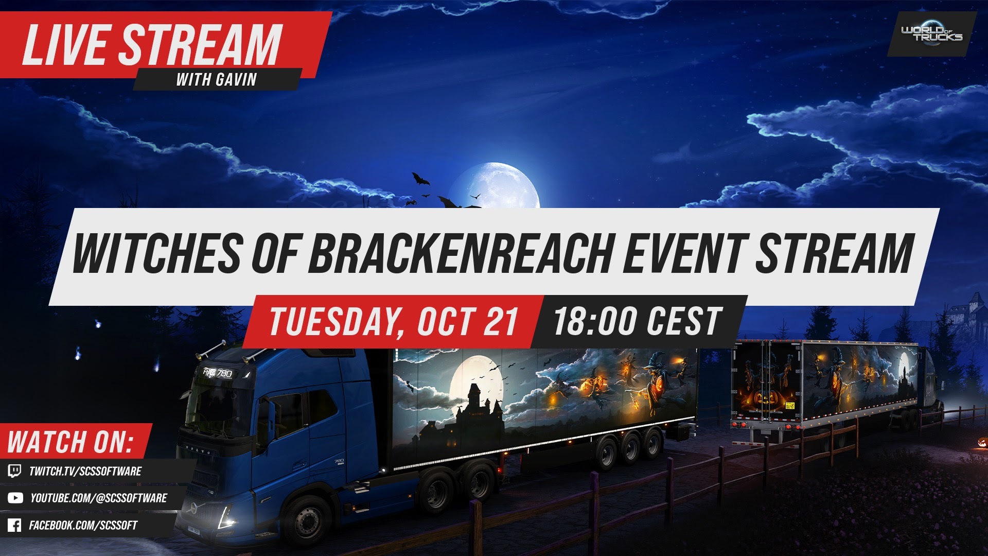Это наше крупнейшее хэллоуинское событие, и мы безумно рады узнавать о ваших смелых и захватывающих путешествиях в легендарную землю Brackenreach, и о том, осмелились ли вы искать трёх хранительниц-ведьм. Это был невероятный труд всех команд, чтобы создать это удивительное новое место, и нам будет очень приятно увидеть ваши фотографии, когда вы проходите все испытания, достигаете своих целей и наслаждаетесь трофеями в этом сезоне Хэллоуина. Делитесь скриншотами и видео с нами, используя хэштег #WitchesOfBrackenreach на наших страницах Facebook ATS / ETS2, X (бывший Twitter) и Instagram, и мы поделимся нашими любимыми.