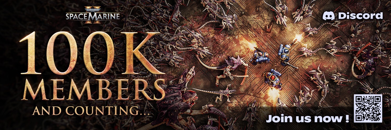 В этом месяце официальное сообщество Space Marine 2 в Discord достигло невероятной отметки в 100 000 человек! Ура!! 🪅 🎉 🍻