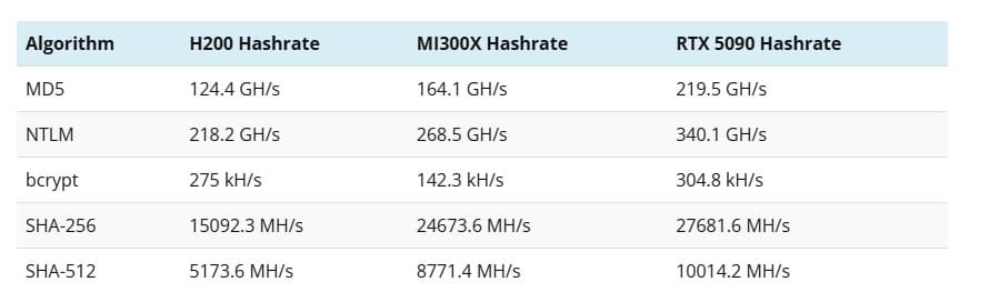 Специалисты компании Specops решили выяснить, насколько современные ИИ-ускорители пригодны для брутфорса — подбора паролей. Для масштабного тестирования они задействовали Nvidia H200 и AMD Instinct MI300X, а в качестве точки отсчета взяли флагманскую потребительскую видеокарту RTX 5090.