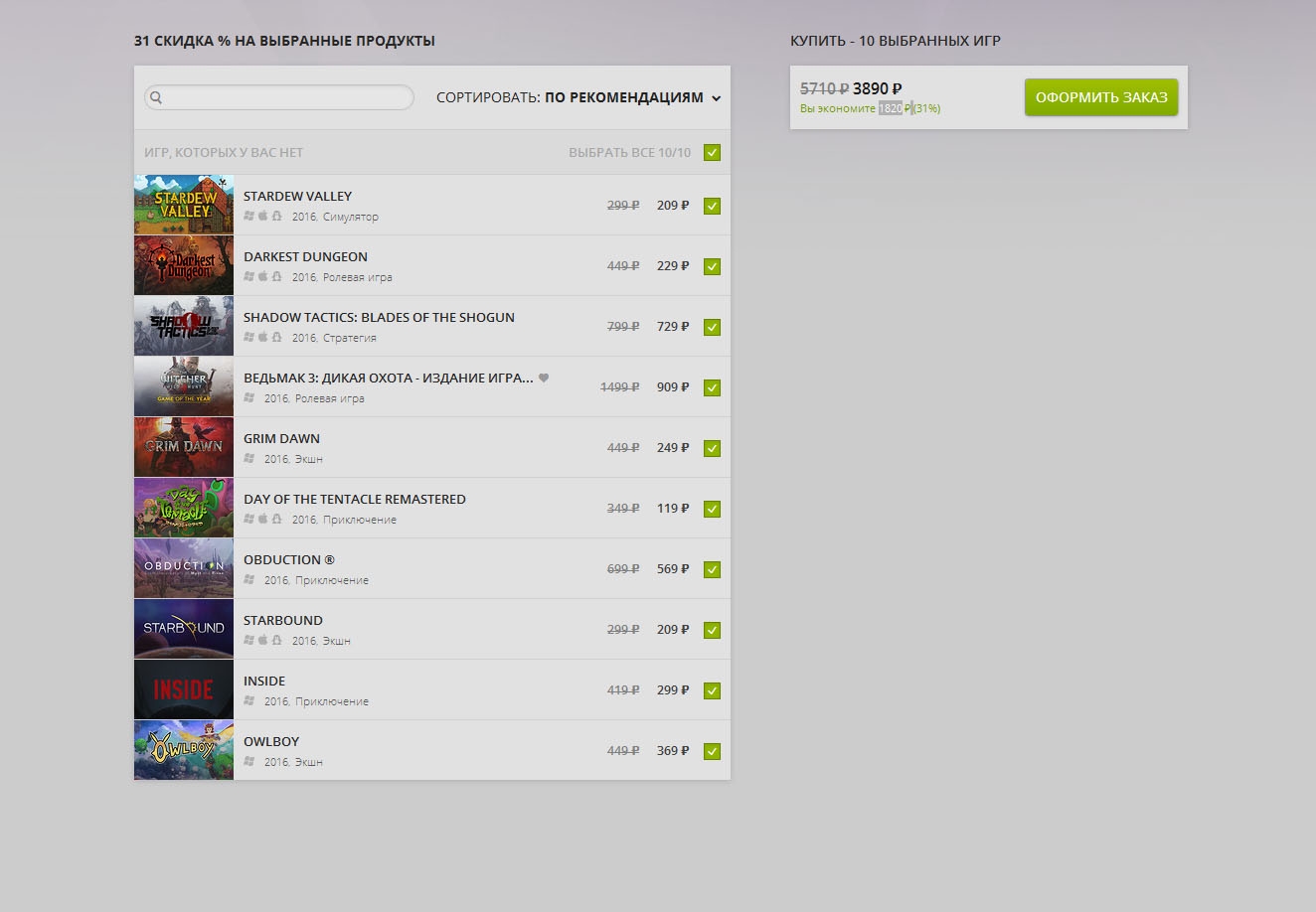 Её изюминкой является специальный комплект из десяти самых запоминающихся игр 2016 года по версии GOG. «Год был во многом непростым, но, пожалуй, все мы согласимся в одном: в плане игр он был восхитителен, — говорят дистрибьюторы. — И чтобы подвести черту, мы выставляем десять шикарных игр уходящего года вместе с множеством классических и современных чудесных проектов на распродажу “10 ярких игр 2016 года”».