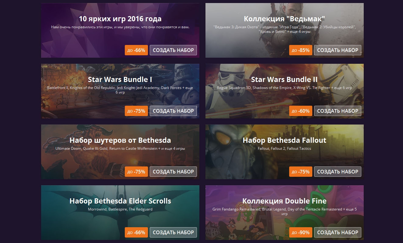 Приобрести игры можно как по отдельности, так и единым комплектом, который в сумме обойдётся вам в 3890 рублей — экономия составит 1820 рублей (или 31 %). Впрочем, упомянутыми играми дело не ограничивается — вы можете пополнить свою библиотеку классическими и современными проектами со скидками до 90 %, например, Neverwinter Nights 2, Homeworld Remastered, Rebel Galaxy, The Elder Scrolls III: Morrowind, Grim Fandango Remastered, Fallout 1 и 2 и многими другими.
