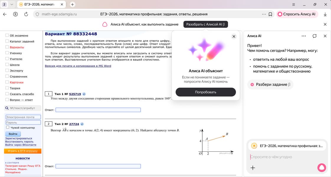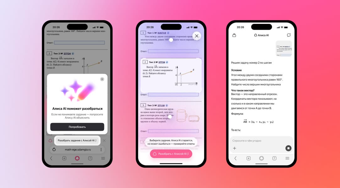 Интеграция передовых технологий в «Алису AI» внутри «Яндекс Браузера» и мобильного приложения «Яндекс с Алисой AI» открыла новые возможности для школьников, готовящихся к аттестации. Как уточняет пресс-служба компании, нейросетевая модель научилась в автоматическом режиме идентифицировать учебные материалы на профильных сайтах и предлагать детальный разбор. В режиме диалога помощник не просто выдает ответы, а пошагово разъясняет логику решения, освежает в памяти теоретические основы и приводит наглядные примеры.