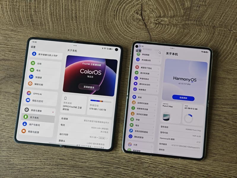 Известный сетевой информатор Digital Chat Station представил наглядное сопоставление двух актуальных «раскладушек»: Huawei Pura X Max и Oppo Find N6.