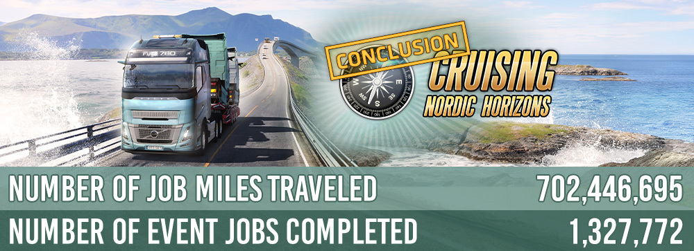 По сложившейся традиции, выход каждого расширения карты сопровождается специальным мероприятием в World of Trucks с уникальными целями и наградами. В рамках #CruisingNordicHorizons перед игроками стояла общая цель: преодолеть суммарную дистанцию в 300 000 000 километров, доставляя грузы в города дополнения Nordic Horizons или за их пределы. Личное испытание требовало от водителей выполнить 18 контрактов через шесть различных городов в каждой из представленных стран: Норвегии, Швеции и Финляндии.