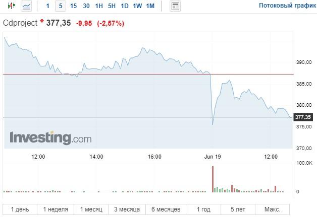 Но первой, похоже, отреагировала фондовая биржа. Как и ожидалось, акции CD Projekt Red подешевели. Падение незначительное.