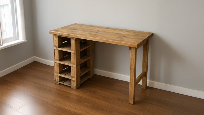 Создание письменного стола из паллет — наиболее доступный и популярный способ изготовления самодельной мебели. Стандартный европоддон имеет размеры 120×80 см, что близко к оптимальным параметрам рабочей поверхности. Для проекта потребуется 2-3 поддона в зависимости от желаемой конфигурации и высоты конструкции.