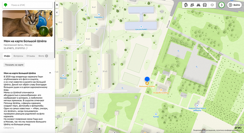 Для активации тематического слоя достаточно ввести в строке поиска фразу «мемы на карте». Создатели планируют систематически расширять этот каталог и приглашают аудиторию к сотворчеству: свои варианты локальных приколов можно направлять на электронный адрес meme@2gis.ru.