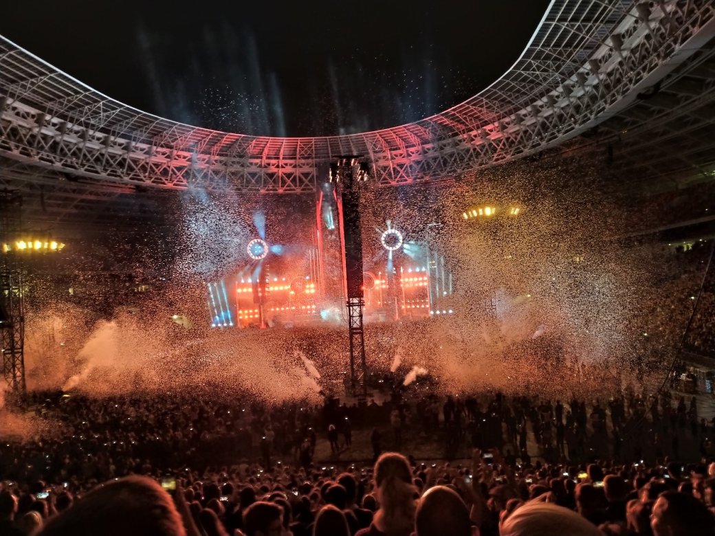 29 июля в Москве в «Лужниках» прошел концерт Rammstein, который собрал около 100 тысяч фанатов немецкой метал-группы. Разумеется, музыканты исполнили не только песни с нового альбома (трек Deutschland прозвучал на сцене два раза!), но и старые хиты вроде Sonne.