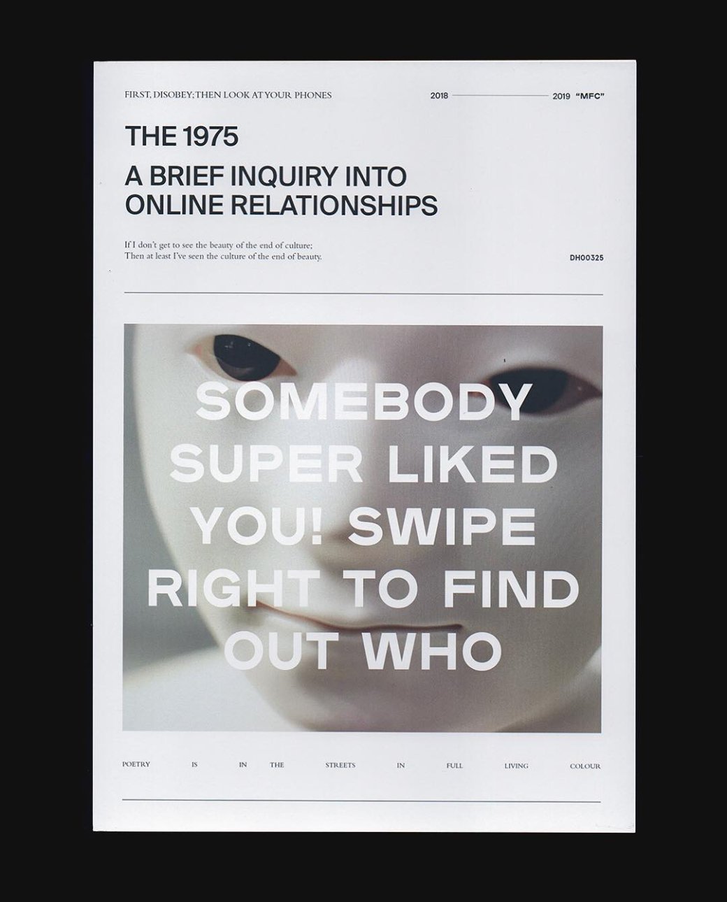 Цифровая зависимость стала одной из ключевых тем ABIIOR — да, заезженная тема, которая, однако, только актуализируется с каждым днем. В социальных сетях группы развернули целую промо-кампанию с активистскими постерами, а в магазине 1975 можно приобрести 24-страничный манифест, в котором красной линией проходит девиз альбома — MODERNITY HAS FAILED US.