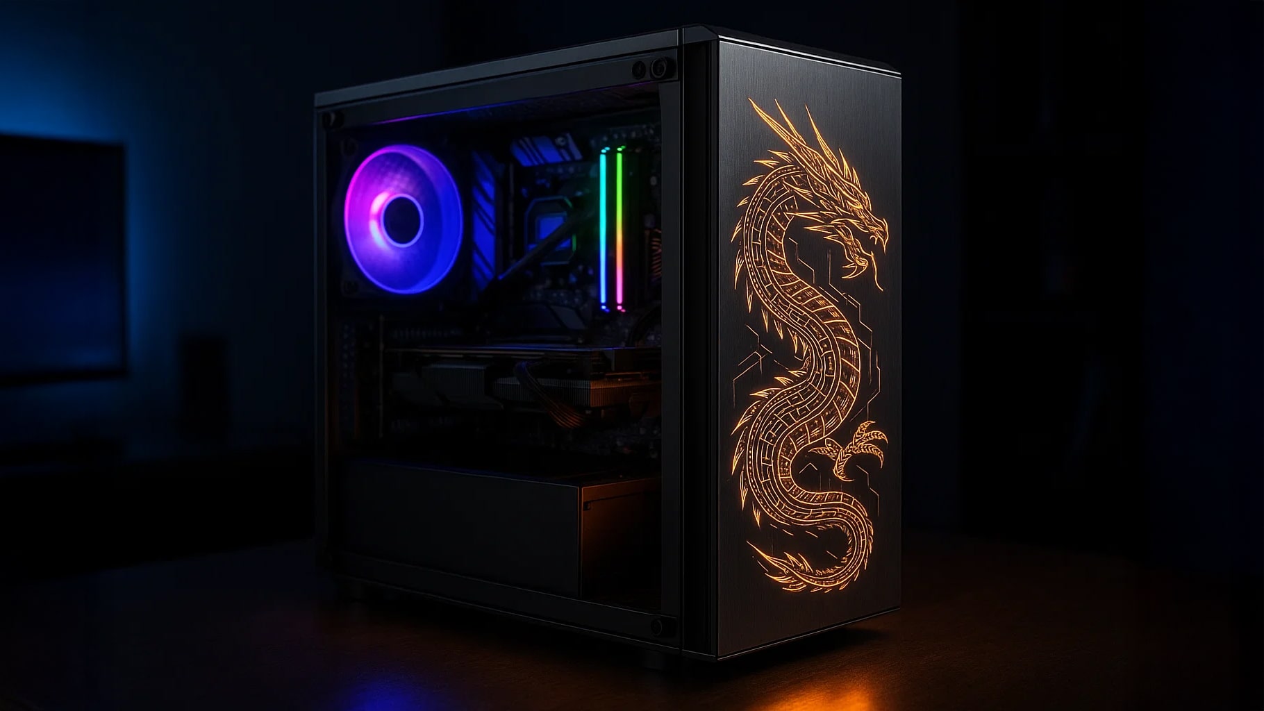 Многие геймеры строят уникальные сборки — кастомные корпуса, необычные формы, подсветка. Лазерная гравировка по металлу и акрилу позволяет: