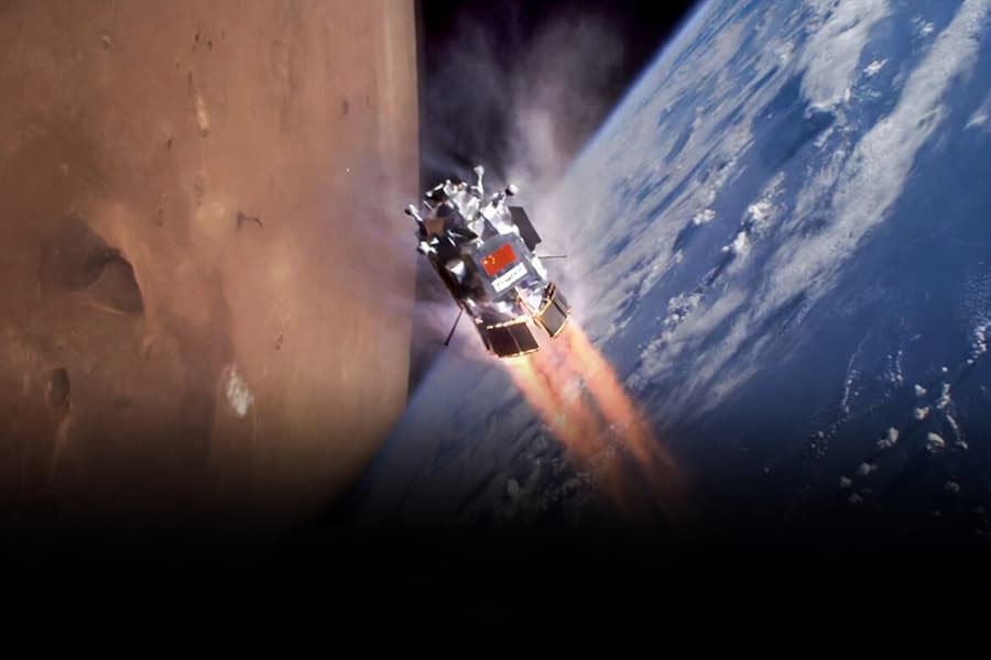 В данном кадре нам демонстрируют заснеженную локацию, на которой вдалеке расположены фирменные фигурки кроликов, которые являются маскотами компании Xiaomi.