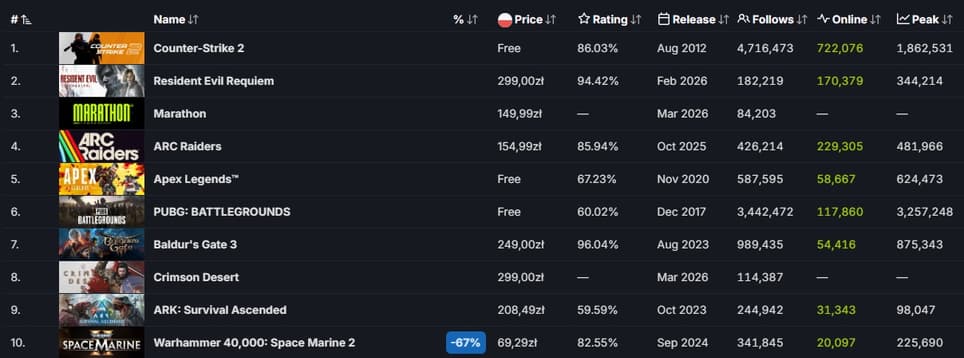 За считанные дни до полноценного релиза Marathon, этот extraction-шутер прочно закрепился в тройке лидеров Steam по объему выручки, чему способствовали активные показатели цифровых предзаказов.
