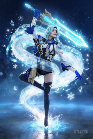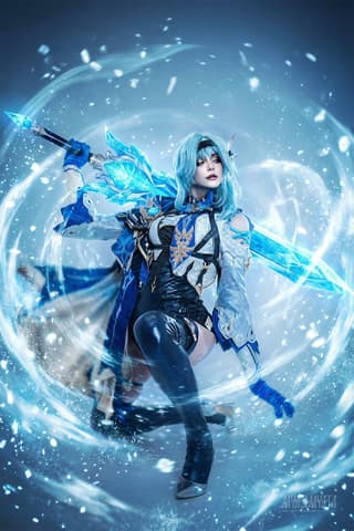 Throughout the photoshoot, the model portrays Eula Lawrence, a prestigious five-star character who joined the game’s ever-growing roster of playable heroes in 2021 following the launch of the 1.5 update.