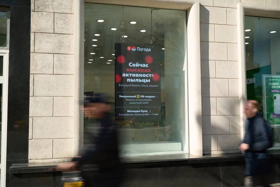 Команда Яндекса внедрила на столичные цифровые носители виджеты, транслирующие актуальные сведения о дорожной ситуации, метеоусловиях и уровне концентрации пыльцы. В данный момент компания проводит пилотный запуск этого гибридного формата — совмещающего утилитарную информацию с рекламой — на пилларах, витринных дисплеях и медиакоробах такси.