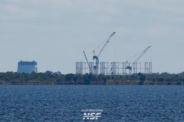 Недавно опубликованы свежие снимки, демонстрирующие грандиозный масштаб производственного комплекса Gigabay на территории космодрома Starbase. На кадрах отчетливо различимы четыре башенных крана, задействованных в возведении сооружения.