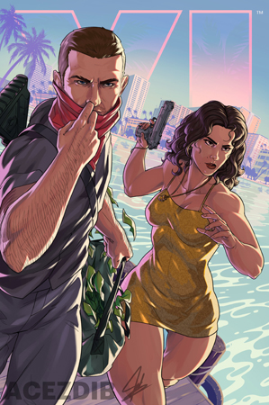 Иллюстраторы продолжают черпать вдохновение в теме GTA 6, создавая фан-арты с Джейсоном и Лусией. На экране работа ACEZDIB из Мексики.