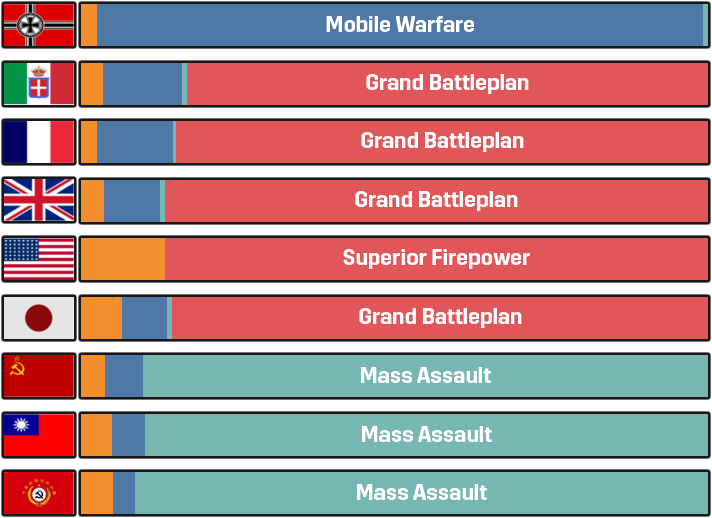 В завершение — разбор нашей телеметрии по использованию доктрин. (Примечание: это данные только реальных игроков, без учёта ИИ!)