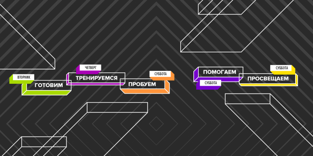 Теперь вы точно не забудете, что по вторникам вас будут ждать новые рецепты, по четвергам — тренировки, а по субботам — интересные видео из рубрик «Пробуем», «Помогаем», «Просвещаем».