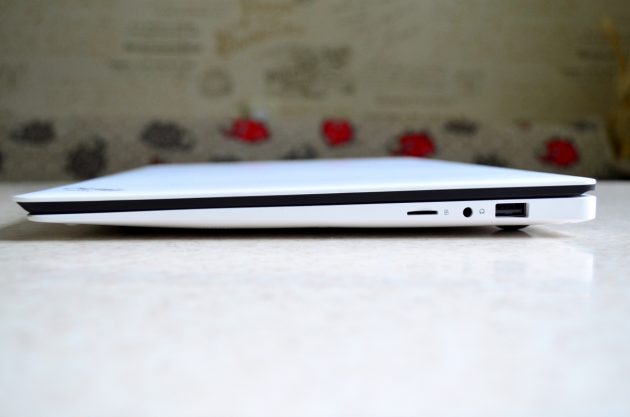 Особо необходимо остановиться на габаритах устройства. В передней части толщина корпуса составляет около 9 миллиметров, в то время как возле крепления крышки эта величина увеличивается уже до 2 сантиметров. Такое конструкторское решение позволило добиться удачного компромисса между стремлением сделать ноутбук как можно более тонким и в то же время уместить в него все необходимые разъёмы.