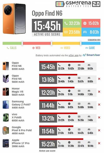 Эксперты профильного ресурса GSM Arena, наряду с обзором Xiaomi Watch 5, оснащенных внушительным аккумулятором, представили результаты тестирования складного флагмана Oppo Find N6. Данная модель примечательна тем, что место сгиба на ее основном экране практически неразличимо глазу.
