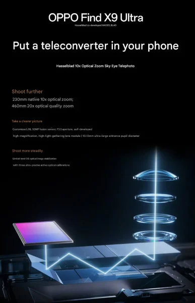 Компания Oppo официально подтвердила, что флагман Find X9 Ultra получит революционный 10-кратный оптический телеобъектив, разработанный совместно с Hasselblad. Производитель характеризует новинку весьма амбициозно, проводя параллели между интеграцией этого модуля и использованием профессионального телеконвертера в корпусе смартфона.