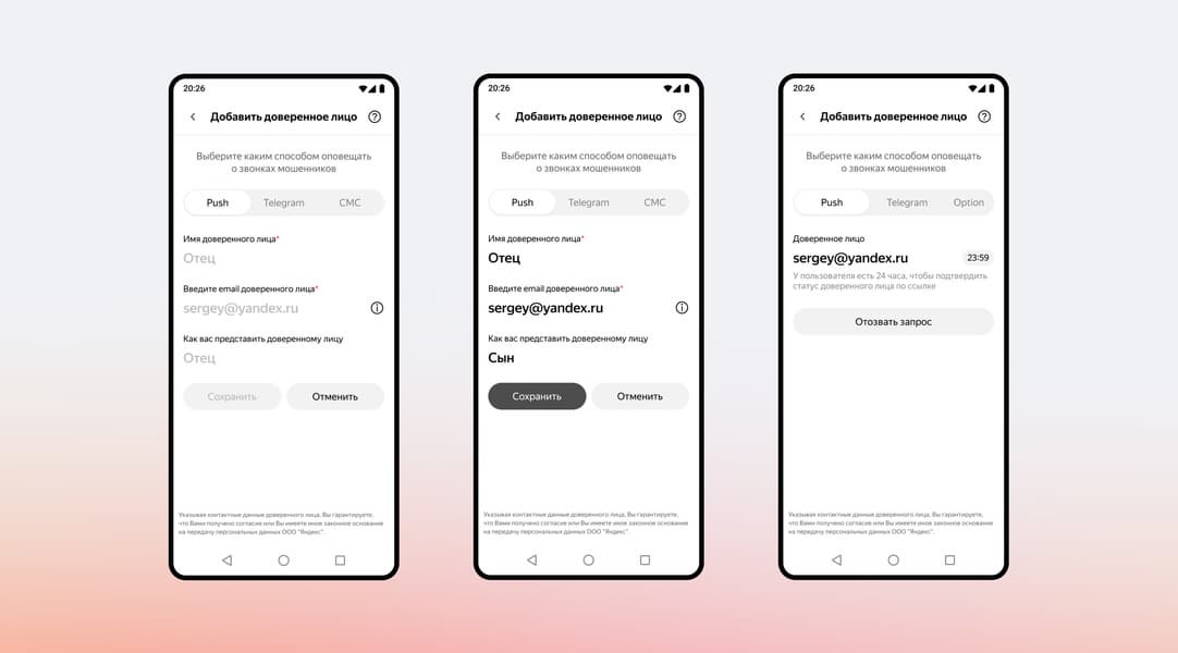 Для получения экстренных оповещений можно выбрать наиболее удобный формат: push-уведомления в приложениях Яндекса, SMS или сообщения в мессенджерах. Чтобы активировать защиту, достаточно зайти в настройки определителя, внести нужные контакты в перечень доверенных лиц и настроить предпочитаемые каналы связи.